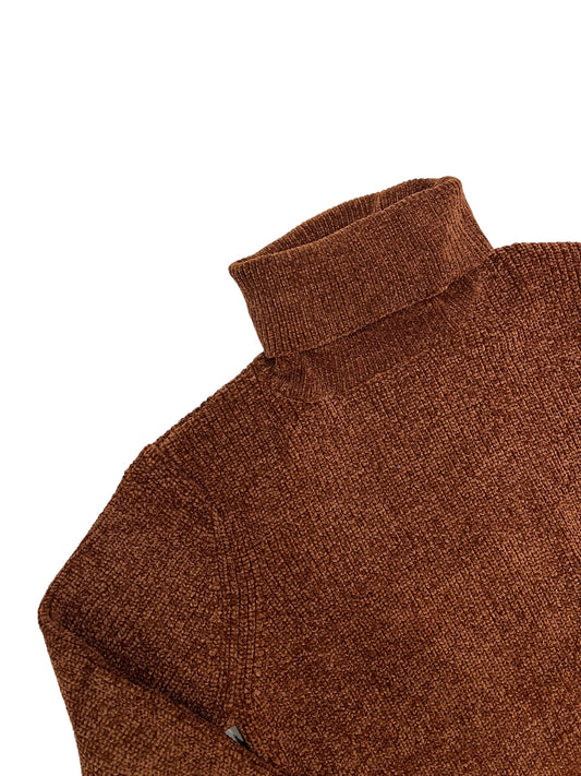 Maglione ciniglia a collo alto bronzo